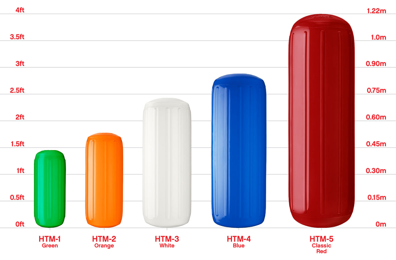 In keeping with the Polyform tradition of quality, the HTM (hole-through-middle) boat fender was designed to provide maximum protection in a wide variety of applications. Vertical ribs for extra protection, reinforced tube ends to prevent lines from pulling through if the fender gets caught in a tight spot, and extra wall thickness to resist punctures and tears are just a few of the features this high-quality fender has to offer. The HTM-Series fender is designed to provide protection and stand-off for larger vessels between 20 to 50+ feet in length. Choose from several sizes and a variety of Polyform colors.
